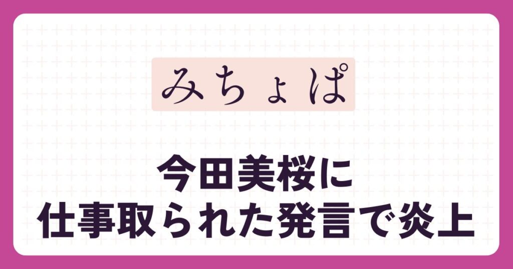 人気タレントのみちょぱこと池田美優さんが、女優の今田美桜さんに対して行った発言が大きな話題となっています。 「仕事を取られた」という趣旨の発言が、ネット上で批判を浴びる事態に発展しました。 今回は、みちょぱさんの発言内容や炎上の経緯、そし... -