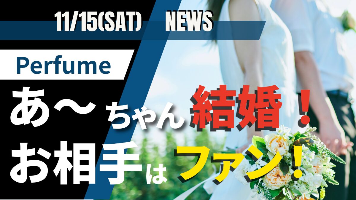 Perfumeのあ〜ちゃん(西脇綾香)さん(36)が、11月11日に自身のInstagramで結婚を発表しました。