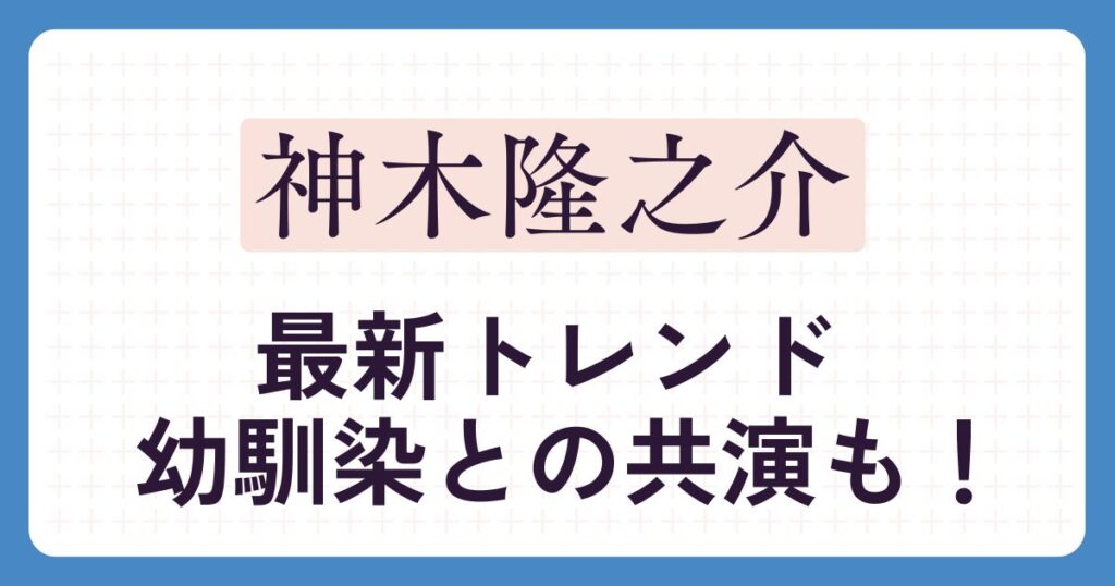 俳優・声優として幅広く活躍する神木隆之介さん。 2024年から2025年にかけて、テレビドラマ以外のフィールドでも話題を集めています。 本記事では、神木さんの最新トレンド5つを厳選してご紹介します。 大手メディアではあまり取り上げられていない情報も...